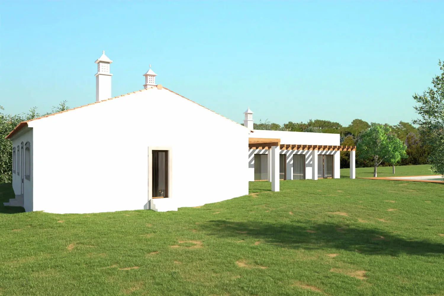The focus of this project was to create the relationship between the interior and the exterior, make the most of the sun exposure and adapt this country house to a contemporary lifestyle and simultaneously provide it with some characteristics of the Algarve’s popular house visible at the level of stonework and chimneys.